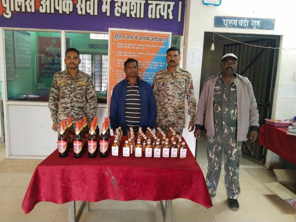 जगदलपुर पुलिस अधीक्षक शशीमोहन सिंह के मार्गदर्शन में अतिरिक्त पुलिस अधीक्षक महेश्वर नाग के निर्देश, एसडीओपी केशलूर एश्वर्य चन्द्राकरके पर्यवेक्षण में जुआ, सट्टा एंव शराब रेड कार्यवाही हेतु थाना कोड़ेनार से विशेष टीम गठित किया गया हैं। इस दौरान टीम को मुखबीर द्वारा सूचना मिला कि ग्राम कोड़ेनार हड़मापारा के लीलमोहन उरांव ने अपने किराना दुकान के दाहिने तरफ दो सफेद कार्टुन में अंग्रेजी शराब छिपा कर रखकर अवैध रूप से ब्रिकी कर रहा है कि सूचना तस्दीक पर गठित टीम द्वारा त्वरित कार्यवाही हेतु मुखबिर द्वारा बताये गये स्थान पर पहुंच कर घेराबंदी कर शराब विकेत को पकड़े नाम पता पूछने पर अपना नाम लीलमोहन उरांव पिता स्व० श्री सोमरा उरांव उम्र 38 वर्ष जाति उरांव साकिन हाल कोड़ेनार हड़मापारा का होना बताया जिसके कब्जे से अवैध रूप से ब्रिकी कर रहे 50 नग गोव व्हीस्की अग्रेजी शराब 9000 एम०एल किमती 5500 रूपये व 12 नग किंगफिसर स्ट्रांग अग्रेजी बीयर 7800 एम०एल० जुमला मात्रा 16.800 लीटर किमती 9100 रूपये को जप्त किया गया आरोपी का कृत्य अपराध धारा 34(2) आबकारी एक्ट का पाये जाने से अपराध पंजीबद्ध कर विधिसंगत कार्यवाही किया गया। उक्त कार्यवाही में थाना कोड़ेनार स्टाफ