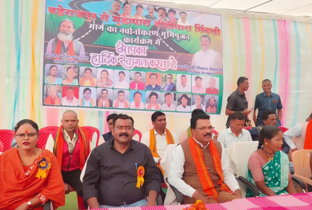 केशकाल विधायक नीलकंठ टेकाम ने बड़ेराजपुर क्षेत्र की बहुप्रशिक्षित मुंडापारा छिंदली तक 8किलोमीटर तक की सड़क जो कि 226.58 लाख रुपए की लागत से नवीनीकरण का भूमिपूजन किया।भूमिपूजन कार्यक्रम में बड़ेराजपुर,छोटेराजपुर,छिंदली,कोपरा, मांडोकी खरगांव समेत आठ पंचायतों के जनप्रतिनिधि ग्रामीण उपस्थित रहे, सभी ने विधायक नीलकंठ टेकाम को धन्यवाद ज्ञापित किया। विधायक नीलकंठ टेकाम ने अपने उद्बोधन में कहा कि मैं जब कोंडागांव जिले का कलेक्टर था तब से बड़े राजपुर से मुंडापारा सड़क की जर्जर स्थिति को लेकर काफी परेशान रहता था, अब तक पता नहीं कितने लोग इस सड़क पर गिरकर चोटिल हो चुके हैं विधानसभा का चुनाव लड़ते वक्त भी मैंने इस सड़क नवीनीकरण का संकल्प लिया था, और अथक प्रयास के बाद अब इस रोड नवीनीकरण की स्वीकृति मिली है जो 8 किलोमीटर की सड़क 2 करोड़ 26 लाख 58 हजार रुपए की लागत से अतिशीघ्र बनकर तैयार होगी। विधानसभा केशकाल क्षेत्र में बड़ेराजपुर बहुत सारी चीजों में पिछड़ा हुआ है, हमारा अथक प्रयास है कि हम बचे हुए कार्यों की स्वीकृति जल्द दिलाकर बड़ेराजपुर को भविष्य में ब्लॉक मुख्यालय का दर्जा दिला सके, वर्तमान में विधायक केशकाल के प्रयास से 30 लाख रुपए की लागत का महतारी सदन का कार्य प्रगति पर है, वही पांडे पारा से रावसवही सड़क भी विधायक नीलकंठ टेकाम के माध्यम से बन चुकी है आने वाले दिनों में विधायक ने उड़ीसा राज्य से बड़ेराजपुर होते हुए बस चालवाने का भी आश्वासन दिया है, वर्तमान में बड़ेराजपुर होकर प्रतिदिन रायपुर राजधानी के लिए बस चलती है एवं कोड़ागांव जिला मुख्यालय के लिए भी प्रतिदिन बस सेवा शुरू हो गई है बड़ेराजपुर क्षेत्र वासियों के अंदर विधायक को लेकर काफी उत्साह नजर आया बड़ेराजपुर से छोटेराजपुर की ओर जाते वक्त जगह-जगह विधायक नीलकंठ टेकाम का पैर धुलाकर स्वागत किया गया एवं धन्यवाद ज्ञापित किया गया। तदपश्चात छोटे राजपुर ग्राम पंचायत में शीतला मंदिर का भूमि पूजन एवं शेड निर्माण का लोकार्पण किया गयाभूमि पूजन कार्यक्रम में आंगा देवता की भी उपस्थित नजर आई सभी ग्राम पंचायत के ग्राम पटेल पुजारी सरपंच एवं बड़ी संख्या में जनप्रतिनिधि शामिल रहे कोंडागांव जिले के भाजपा जिला अध्यक्ष एवं पूर्व विधायक सेवक राम नेताम महिला मोर्चा की जिला अध्यक्ष एवं वर्तमान भाजपा जिला उपाध्यक्ष अनीता नेताम मंडल अध्यक्ष मन्ना मरकाम प्रदेश मंत्री आ जा ज एवं जनपद सदस्य संगीता पोयम मंडल महामंत्री जीवन दास मानिकपुरी भाजपा युवा नेता योगेश पांडे जिला पंचायत उपाध्यक्ष हिरासिंग नेताम, जनपद सदस्य रायसिंग सलाम,दसरथ मरकाम सरपंच प्रतिनिधि महेश मरकाम, सरपंच प्रति निधि रामसाय मरकाम मंडल महमंत्री सुकदास मरकाम ,सरपंच सुबोध मं