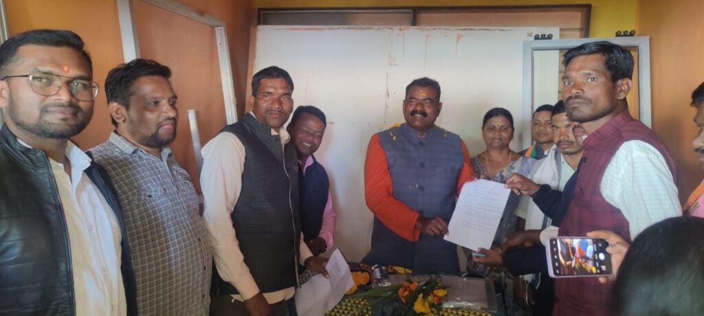 बड़ेराजपुर में विधायक जन सेवा केंद्र का हुआ शुभारंभ।नीलकंठ टेकाम ने पहला आवेदन लेकर किया शुभारंभ।