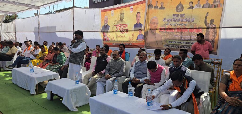 केशकाल में 25 दिसंबर अटल बिहारी वाजपेई के शताब्दी वर्ष पर सुशासन दिवस के अवसर पर पुराना बस स्टैंड में नवनिर्मित अटल परिसर का वर्चुअल उद्घाटन प्रदेश के मुख्यमंत्री विष्णुदेव साय के द्वारा किया गया इस अवसर पर केशकाल के विधायक नीलकंठ टेकाम नगर पंचायत केशकाल के अध्यक्ष बिहारी लाल सोरी,उपाध्यक्ष भूपेश सिन्हा ,नगर पंचायत के पार्षद,वरिष्ठ भाजपा नेता संतोष कटारिया जिला उपाध्यक्ष भाजपा आकाश मेहता, मंडल महामंत्री नवदीप सोनी, राजू राठी एवं अन्य कार्यकर्ता एवं नगर वासी बड़ी संख्या में उपस्थित रहे।